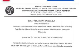 MUKOMUKO – Langkah nyata dalam pengelolaan lingkungan dan pemberdayaan ekonomi masyarakat desa kembali terwujud. Balai Pengelolaan Daerah Aliran Sungai (BPDAS) Ketahun secara resmi menandatangani kontrak kerja sama dengan Badan Us...